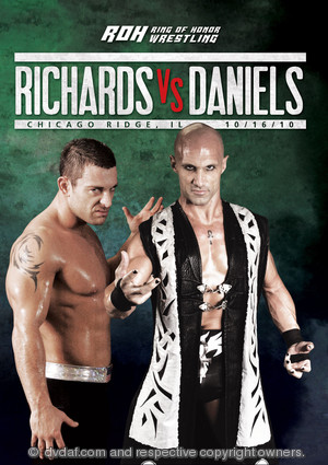 Richards and Daniels stifle as they both go for a shoulder block. Richards shoves Daniels after Daniels tries a shoulder block. Daniels and Richards exchange holds on the mat. Daniels snapmares Richards out of a hammerlock. Richards cartwheels out of a wristlock and takes Daniels down with a dropkick and hip toss. Richards knocks Daniels down with a shoulder block and hits him with a spinwheel kick for two. Daniels takes Richards down. He hits a few jabs and a leg lariat for one. Richards rams his shoulder into Daniels’ stomach in the corner. Daniels gets sent to the floor. Richards hits a running kick to the chest. Richards whips Daniels into the guardrail and follows up with a big boot. Richards applies an Indian Death Lock, which Daniels escapes by grabbing the bottom rope. Richards applies a headscissors on the mat. Richards transitions into an arm-capture cloverleaf. Daniels gets turned to his shoulders and gets pinned for a two count. Daniels suplexes Richards to the floor. He tries a baseball slide, but Richards heads back in the ring. Richards goes for a dive and Daniels hits him with a shotei to block. In the ring, Daniels hits a high crossbody for two. Daniels slams Richards and hits an Arabian Press for two. Daniels hits a running clothesline. Richards cracks Daniels with a kick to the head. Richards hits a running forearm and snap suplex. Richards hits a flying headbutt for two. Daniels backs Richards into the corner to avoid the DR Driver. Richards and Daniels fight on the middle rope. Richards takes Daniels down with a superplex. Daniels escapes an ankle lock. Richards and Daniels engage in a battle of strikes. Richards lays in some Kawada Kicks while Daniels’ gives Richards some shotei’s. Richards hits the Alarm Clock. Daniels drops Richards with the Blue Thunder Bomb. He transitions from an STO into the Koji Clutch. Richards turns it into an ankle lock, but Daniels then turns it into his own ankle lock. Richards rolls forward, throwing Daniels to the floor. Richards hits a suicide dive into the crowd. In the ring, Daniels peppers Richards with strikes. Richards hits a handspring enzuigiri. Richards kicks Daniels in the shoulder and places him on the top rope. Richards runs up and tosses Daniels off the top rope with a German suplex. Daniels chops Richards on the top rope. Richards headbutts Daniels to the mat. Richards misses a shooting star press. Daniels grabs Richards and locks the Koji Clutch back on. Richards gets his foot on the bottom rope to break the hold. Richards and Daniels fight on the ring apron. Daniels drops Richards on the apron with a Death Valley Driver. Both men make it back in before the 20 count. Daniels shotei’s Richards to the floor. Richards fires up and gets back in the ring. Richards and Daniels exchange strikes. Daniels hits the Angel’s Wings for two. As Daniels comes off the top rope with the best moonsault ever, Richards catches him in an ankle lock. Daniels rolls into a pin for two. Daniels hits an enzuigiri, and Richards hits a clothesline for two. Richards kicks Daniels right in the head for two. He drops Daniels with the DR Driver for two. Richards goes back to the ankle lock. Richards sits down on it and Daniels taps out at 29:31. Man, that certainly was a heck of a match. Daniels work when he first came back was underwhelming,but over the past couple of months he has really put on some great matches. This one was easily the best of all all. He has really re-earned his main event spot in ROH. Richards of course put in another great contest and had the Chicago fans going nuts at the end. The six months of build up led to a great pay off. If you’re a big fan of either guy, this is certainly a match you want to see. ****1/4
