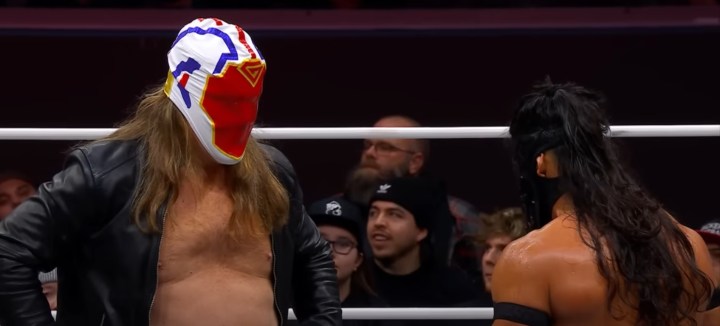 After defeating Johnny TV on the March 23rd Collision, Bandido called out Chris Jericho, demanding he come to the ring with his brother Gravity’s mask in hand. Jericho and his Learning Tree made their way to the ring with the mask, as requested. Jericho says he won’t give Bandido his brother’s mask back, because he wants Bandido to remember the humiliation Gravity felt that night. Jericho also says the only thing more disrespectful than taking someone’s mask is putting that mask on. He then puts Gravity’s mask on and asks Bandido if he is just going to cry like his mother did. Bandido then hits Jericho with a haymaker. He fights off the Learning Tree and grabs the Gravity mask off of Jericho’s face.